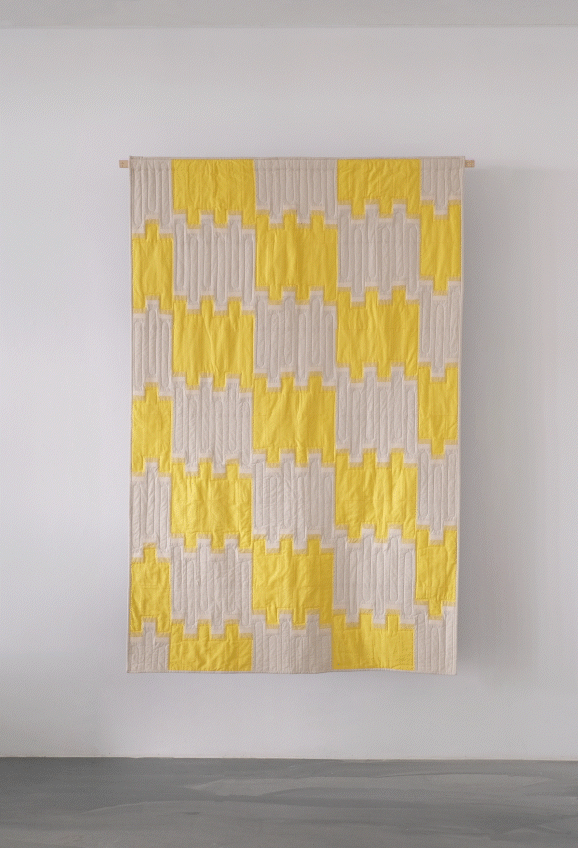 Die Arbeit „spektrum osnabrück – schlossgarten“ bezieht sich auf einen Ort zwischen Wissen, Begegnung und Ruhe. Hier treffen Architektur, Natur und Menschen aufeinander – Studierende, Spaziergänger*innen, Besuchende. Das Raster greift die Wegeführung und Fassadenstruktur auf, während Gelb- und Weißtöne die Strahlkraft des Schlosses aufnehmen. Gelb steht zugleich für Kreativität und geistige Bewegung. Auf der Rückseite verweist ein tiefes Grün auf die Grünfläche – auf Wachstum, Bewegung und Austausch. Die Textur des Quiltmusters nimmt die Haptik der Wege auf, die um die Grünfläche führen, ebenso wie die gelben Stangen des Spielplatzes in unmittelbarer Nähe. Wir verdichten den Ort zu einem Moment zwischen Ordnung und Lebendigkeit, zwischen konzentrierter Stille und offenem Dialog.